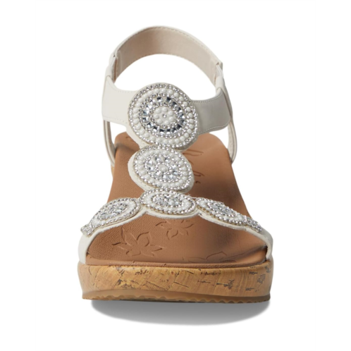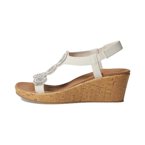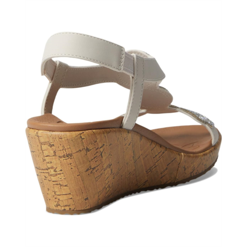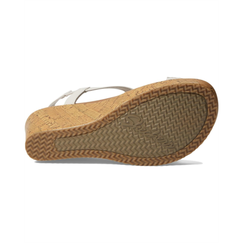 The SKECHERS Beverlee - Date Glam wedge sandal will showcase your trendsetting style with decorative rhinestones, jewel embellishments, slide-on styling, and a cork-wrapped midsole and wedge heel.
