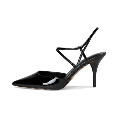 Step up your look in the Calvin Klein Cordera dress pumps featuring high stiletto heels, a strappy silhouette, and a pointed toe shape. These heeled pumps are made of a polyurethane upper, cushioned insole, and man-made lining. These pump shoes will never go out of style.