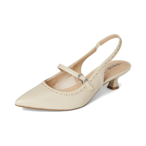The LifeStride Marilyn Slingback Shoes that look so chic. You'll loving wearing these incredibly comfortable pumps with a sculpted kitten heel. Faux leather upper with a softly pointed toe, mary jane strap with buckle detail, slingback strap with built-in stretch, and sculpted heel. It features pointed toe, kitten heel, and soft system comfort package provides all-day support, flex, and cushioning.