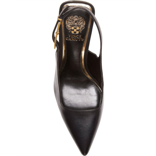 Groove in fashioned flair wearing the Vince Camuto Brendie Pumps. The pointed toe slingback pump sits atop a covered stiletto heel and a rubber comfort pod under the forefoot. The standout detail on this pump is the elongated metal buckle on the sling. The unique low-top sandal is functional and enables the wearer to personalize the fit.