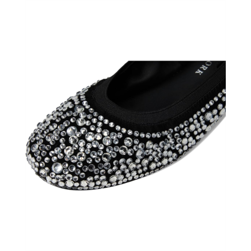 Add a glamorous touch to your outfits wearing the Kate Spade New York Violette Mary Jane Ballet Flats. The leather upper of these shoes features rhinestone detail allover for a chic look and an ankle strap for added support. These ballet shoes are made of a leather insole and lining. Stylish and comfortable, these flat shoes make a great addition to your footwear collection.