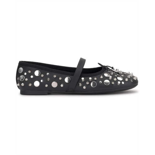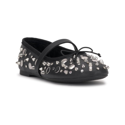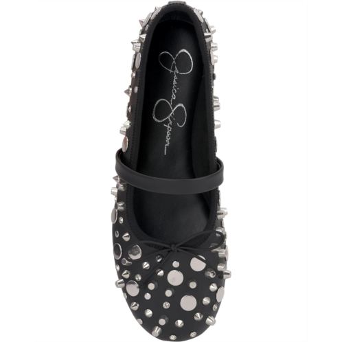 Walk the pavement in your unique style wearing Jessica Simpson Azalina Mary Jane Flats. The ballet-inspired footwear features faux leather upper with allover stud embellishments and elasticized strap offering a secure fit.