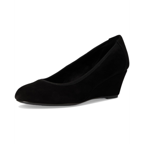 Stay stylish and supported effortlessly donning Rockport Rita dress wedges, where style meets supreme comfort. Crafted with a sleek leather upper and a refined almond toe, these slip-on beauties are designed for your on-the-go lifestyle. The cushioned insole and advanced truTECH technology provide lightweight shock absorption and exceptional arch support, ensuring all-day comfort. A durable synthetic rubber outsole keeps every step secure, while the polyester lining ensures a smooth fit.