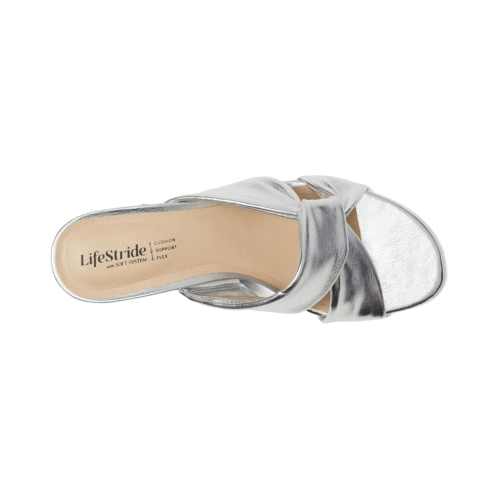 Flirty and feminine, the comfortable LifeStride Nori heeled sandals are a must for your closet. With puffed faux leather upper straps, an open round toe, and a feminine folding detail, they offer both style and elegance. The easy slip-on fit and hourglass-shaped heel add to their appeal. The Trusted Soft System comfort technology ensures unmatched cushion, support, and flexibility, while the traction sole adds extra stability.