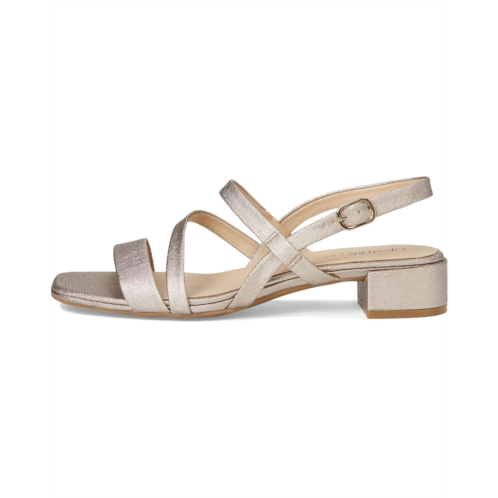 Effortless chic, all day long: The LifeStride Janet strappy sandals are the perfect combination of style and comfort. Featuring a sleek polyester upper and modern open square toe, these sandals boast chic strappy detailing and an adjustable buckle strap closure with built-in stretch for a customized fit. The slingback design adds a touch of sophistication, while partially recycled PU linings showcase an eco-friendly edge. Engineered with trusted Soft System comfort technology, enjoy superior cushioning, support, and flexibility, complemented by a foam insole and full-length cushioned footbed for heel-to-toe bliss. A durable synthetic rubber outsole ensures reliable traction and stability for every stride.