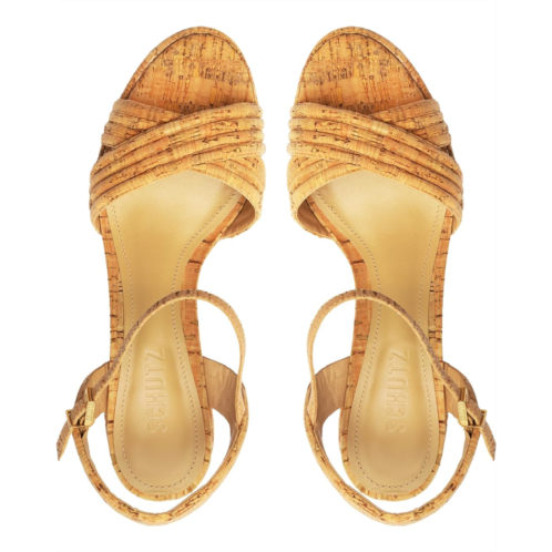 A total icon in the shoe department, the Schutz Latifah Platform brings on a style that you would love to embrace this summer! Sculpted with a towering layered platform and block heel made of cork, these slip-on shoes feature a synthetic upper visualizing crossover straps at the vamp and an adjustable buckle strap closure at the ankle.