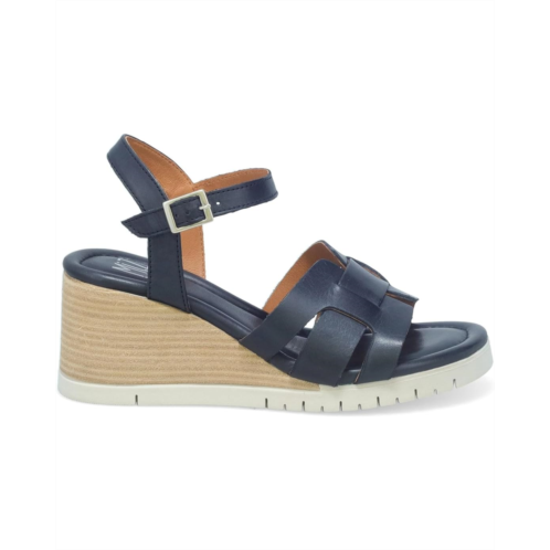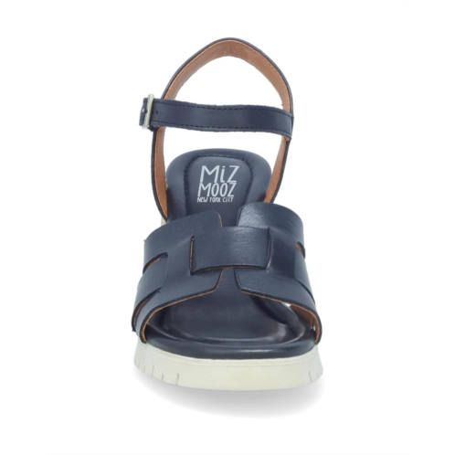 Be party-ready with glitz and glamor wearing the Miz Mooz MacKenzie Sandals. The wedge-heeled footwear features interwoven leather upper straps with open almond toe silhouette and synthetic rubber outsole.