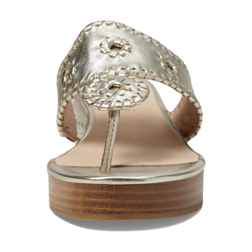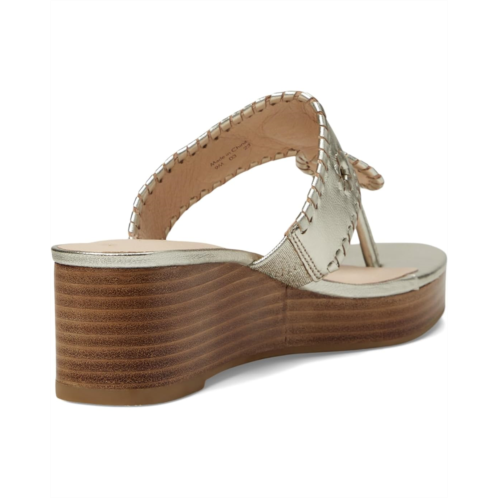 Step up your look with the shine of Jack Rogers Jacks Mid Wedge Stacked heels with toe-post design. These slip-on wedge heels have upper, lining, and insole crafted from luxurious leather.