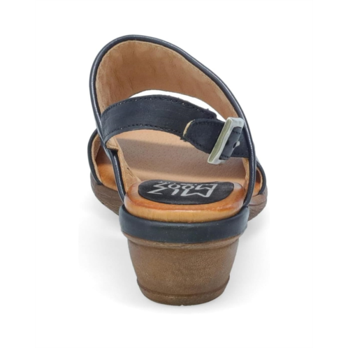 Revel in effortless elegance and class wearing the Miz Mooz Constance Flat Sandals. The almond toe pair features leather upper construction with buckled slingback strap closure and chunky stacked heels.