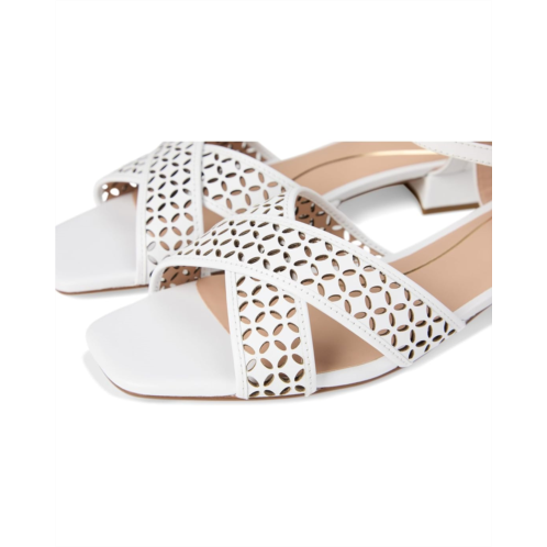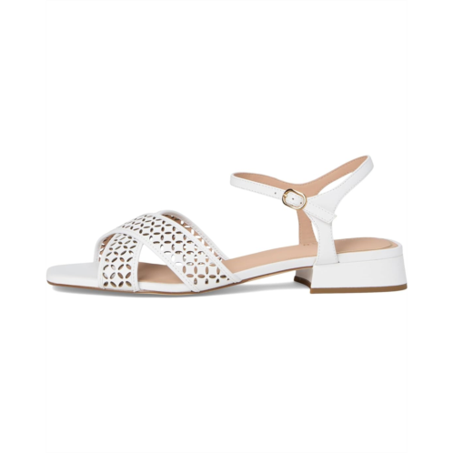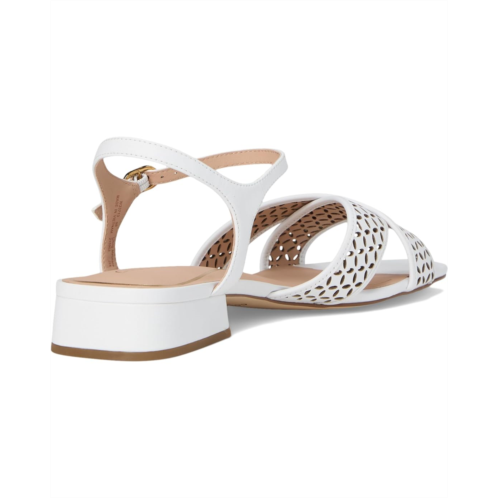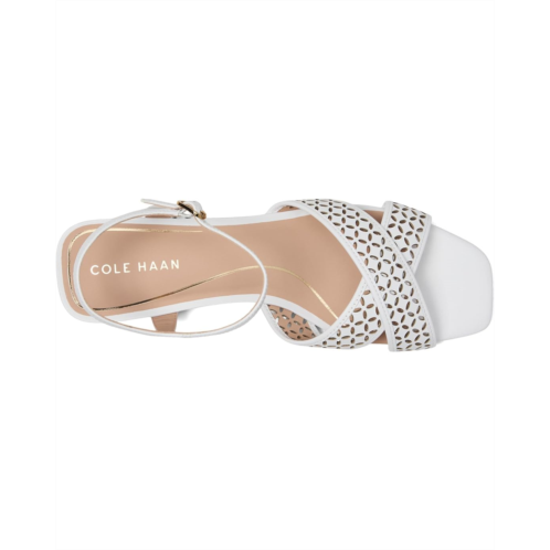 Vintage meets visionary: Cole Haan Patie Sandals. Crafted with a leather upper and soft square toe, these cross-band sandals feature an ankle strap with a functional buckle and a hidden elastic under the buckle for a snug yet flexible fit. The architectural-inspired laser cut perforated detail adds a touch of sophistication to every step. Built with a 3D Lux comfort sock and leather lining, these sandals offer unrivaled support. The EVA insole and buffed synthetic outsole with recycled rubber content and woven laser design ensure lasting traction and comfort, making them perfect for all-day wear.