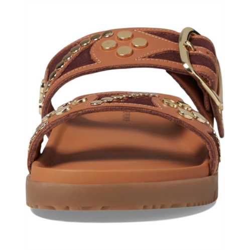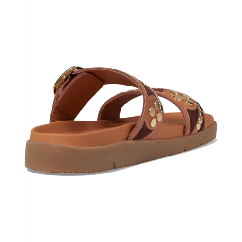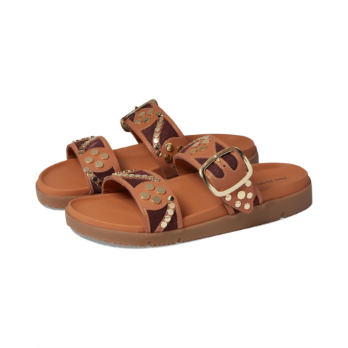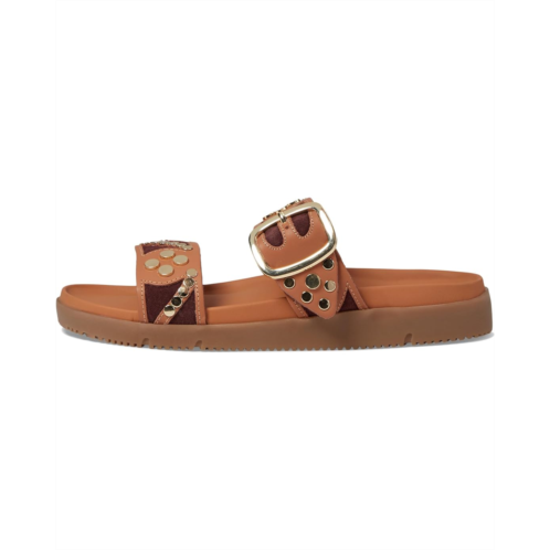 Stay free while walking outdoors by wearing Free People Revelry Studded Sandal. The sandal features a slip-on style and double strap embellished design with large buckle back strap. It has leather upper, leather lining, and insole.