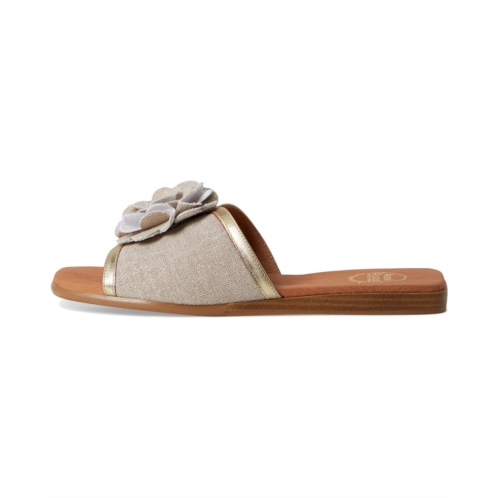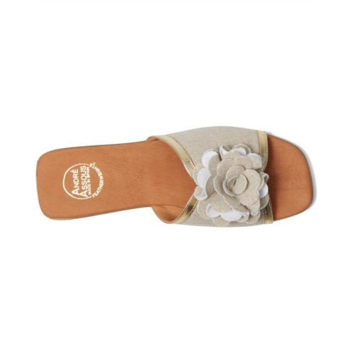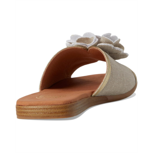 Make a statement this season wearing the Andre Assous Kiky slide sandals! Featuring a stunning three-dimensional flower embellishment on the strap, these sandals are sure to turn heads wherever you go. The textile upper and breathable leather lining keeps your feet cool and comfortable, while the leather insole provides extra support.