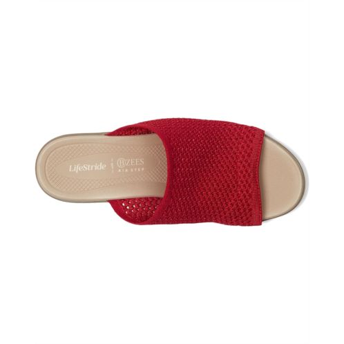 The LifeStride Ella Slide Sandals bring lasting comfort and a hint of style to your everyday look. The slip-on style sandals feature a stretch-engineered knit upper with partially recycled polyurethane linings and an open round toe silhouette. The BZEES Air Step Technology is designed so you'll feel weightless, energized, and free. The ultra-lightweight dynamic stretch fabrics move freely in shoes with built-in stretch. The FreeFoam Comfort low-pressure insoles come with maximum foot contact and cushy arch support. The ComfortBlast Foam is our most premium foam with unbelievable rebound, luxe cushioning, and comfort that never quits. The SoCush arch support odor-control technology. The block heel adds a little height to your look.