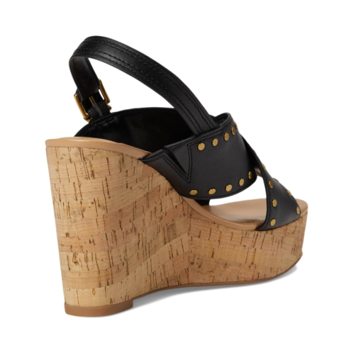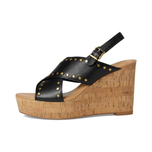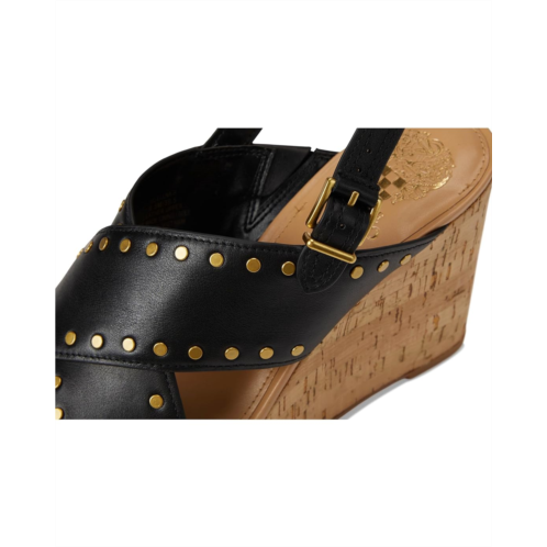 Stand out in style donning the Vince Camuto Ellna Cross-band Wedge Sandals. These chic sandals feature leather upper with stud detailing, giving them a trendy edge. The cross bands add a unique touch, while the synthetic lining and padded footbed provide ultimate comfort. With a buckle closure for a secure fit, these sandals are perfect for stepping out in style.