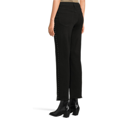 Liverpool Los Angeles Kennedy Mid-rise Straight Jeans W/ Studs And Cut Hem