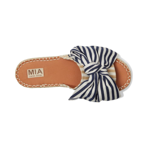 The MIA MLE-Danielle is for bow lovers. Crafted with a striped fabric bow paired with a luxe leather insole, she's your go to sandal for warm weather days. It is finished with an espadrille-wrapped platform heel, offering just the right amount of lift.