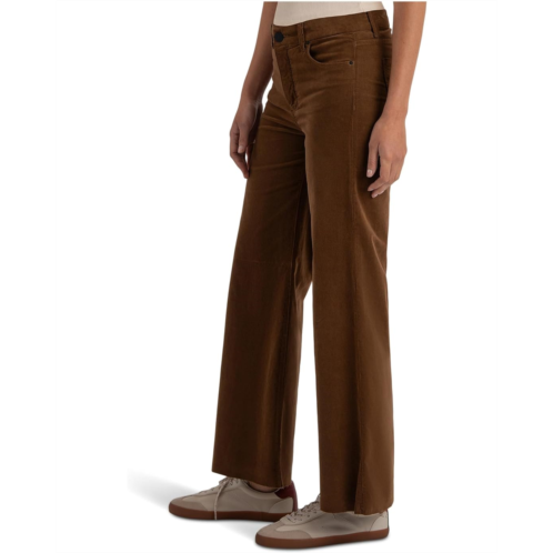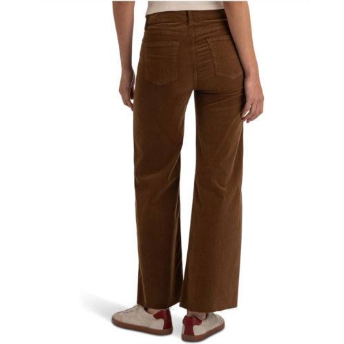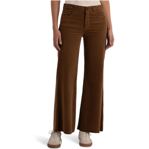KUT from the Kloth Meg High-Rise Fab Ab Wide Leg Raw Hem-Long Inseam in Cognac