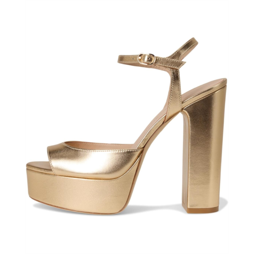 The Stuart Weitzman Dayna Boost Platform makes a statement with its super chunky platform and soaring block heel. Designed with a front platform, this sandal offers scene-stealing height while maintaining a comfortable slope. The buckle adjustable ankle strap ensures a secure fit, while the smooth leather upper adds a luxurious touch.