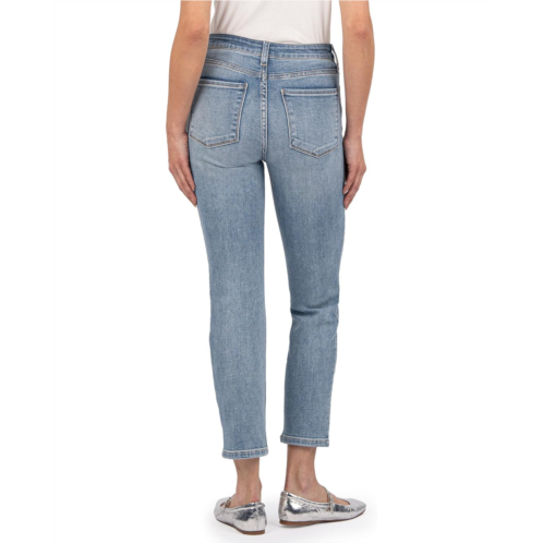 Give your look added style and elegance wearing KUT from the Kloth Reese High-Rise Fab Ab Ankle Straight Regular Hem In Gifted Jeans. The Reese is our signature straight leg with a better-than-vintage aesthetic. It is a relaxed fit straight leg with an ankle length and a modern edge. The high-rise, medium wash jeans features a zip-fly & button closure, belt loops, a five-pocket design, and an ankle-length silhouette.