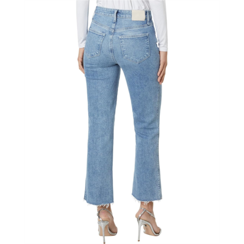 Get ready to rock a trendy look by wearing the Paige Courtney w/ Raw Hem in Khristen Distressed. These high-rise jeans feature a relaxed ankle flare, delivering a flattering fit that keeps you comfortable all day long. The lightweight denim in a light vintage-inspired wash adds a nostalgic charm, while the subtle lived-in details give them an effortlessly cool vibe. With their raw hem, these jeans exude a touch of edginess that sets them apart.