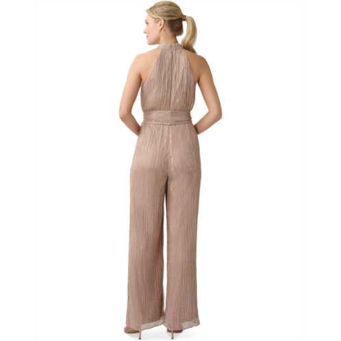 Adrianna Papell Crinkle Metallic Halter Neck Blouson Jumpsuit