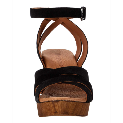 Wow the crowd in these Eric Michael Luna heeled sandals. The leather uppers have a crisscross accent at the heel and ball with an adjustable closure at the ankle.