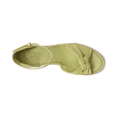 Elevate your look with the timeless silhouette and trendy aesthetic of the Franco Sarto Clementine Heels. The open toe heels are crafted with a leather upper with a delightful knotted strap detail at the front and an ankle strap with adjustable hook-and-loop closure. These come with a polyurethane lining, leather insole, synthetic rubber outsole, and a jute-wrapped wedge heel.