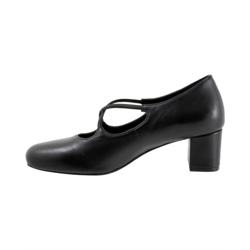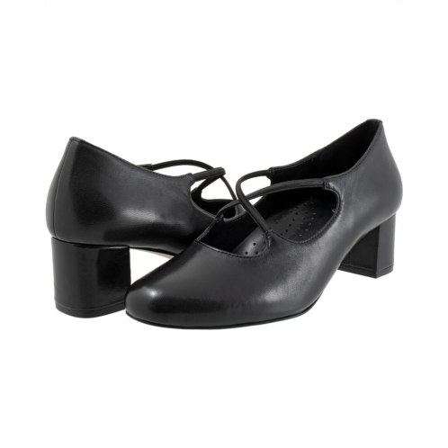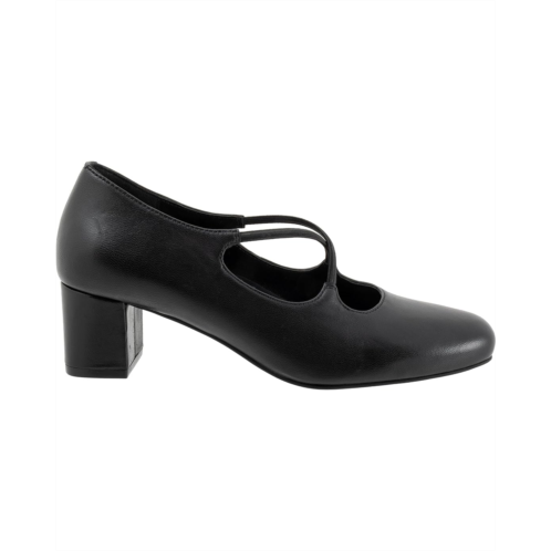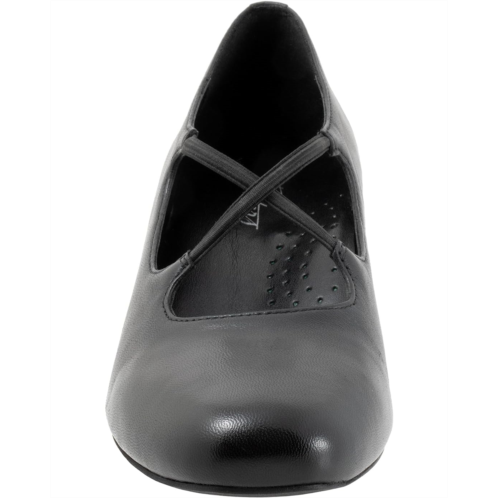 Exclusively brighten up your night look wearing the Trotters Demi. This pair of heels is designed with a crossover strap, block heel, and brand name embossed on the footbed. It also has a soft man-made nappa upper and a cushioned footbed with arch support.
