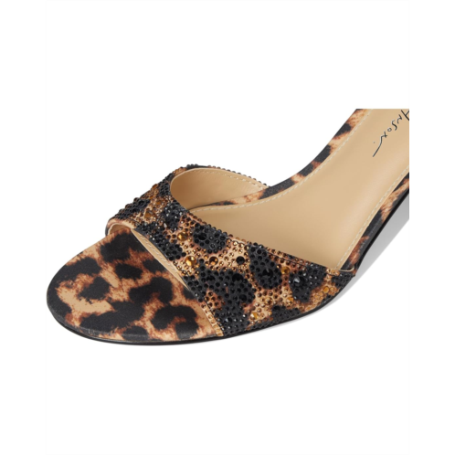 The Blue by Betsey Johnson Kami is a flirty open-toed sandal glistening allover with embellishments. With an adjustable buckle at the ankle strap, it has a sturdy block heel that offers heightening comfort.