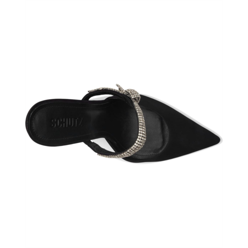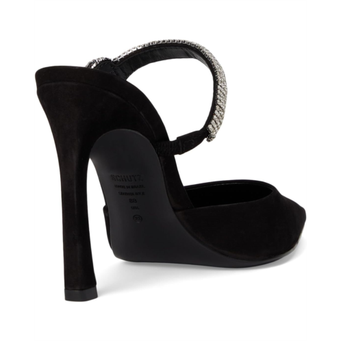 Add an exquisite touch to your partywear looks wearing Schutz Pearl Curve Pumps. The pointed toe pumps are crafted with a leather upper, leather lining, and ethylene vinyl acetate insole. The elastic front strap with crystal bow detailing and stiletto heel elevate the style.