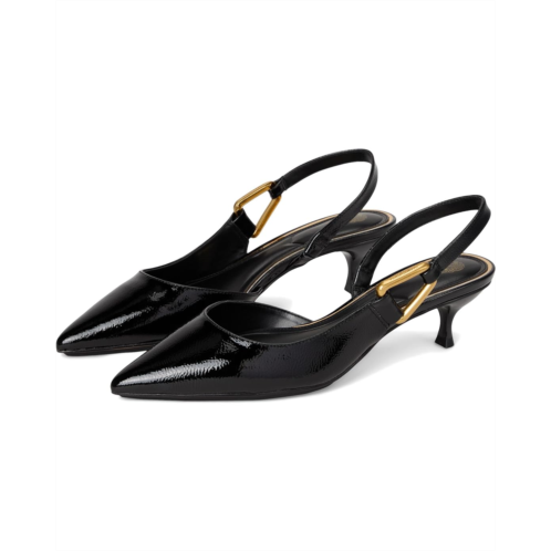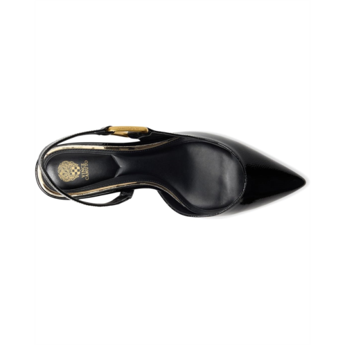 The Vince Camuto Inari Lasso Buckle Slingback Pumps feature a glossy naplack finish that radiates confidence and sophistication. Their sleek, pointed toe shape elongates the leg, while the delicate kitten heels offer a perfect balance of elegance and comfort. A gold-tone geometric accent on the slingback strap adds a modern touch, enhancing its chic appeal. These heeled pumps are made of a leather upper, rubber insole, and polyester lining. Ideal for both day and evening wear, the versatile design of these slingback pumps effortlessly transitions from office attire to special occasions, making them a must-have statement piece in any wardrobe.