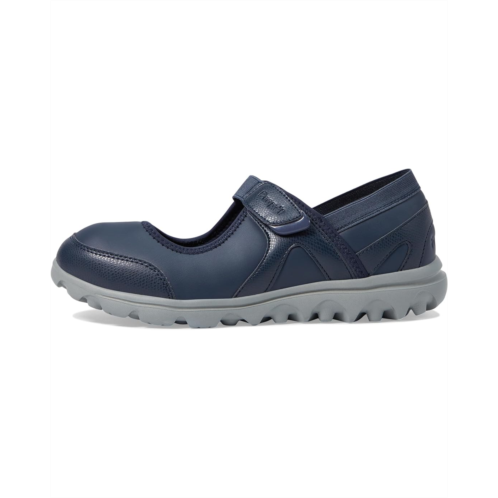 Adjustable Mary Jane strap with a hook-and-loop fastener.