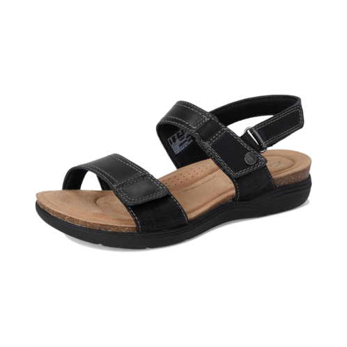 Prepped for breezy warm-weather wear, the Clarks April Clover sandals boast a soft, strappy leather upper for a classic look and feel. Their Clarks Ultimate Comfort PU foam footbed keeps every stride light and free, while a grippy rubber outsole brings extra stability to this ultra-versatile pair. The adjustable strap ensures a secure, custom fit. These leather sandals are made of a cork insole and cotton blend lining, making them comfortable for all-day wear.