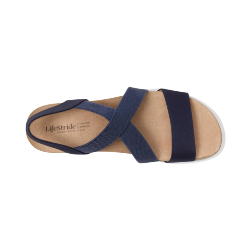 Getting dressed and looking cute is a breeze in the LifeStride Breeze Sandals with built-in stretch and espadrille detailing. The faux leather or fabric upper with stretch gore straps allows extra flexibility. The partially recycled polyurethane lining and foam insole with Trusted Soft System comfort technology also adds unmatched cushion, support, and flexibility. The open round-toe sandals come in an easy slip-on fit with jute-wrapped espadrille wedge heel.