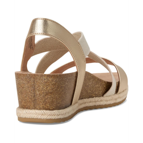 Getting dressed and looking cute is a breeze in the LifeStride Breeze Sandals with built-in stretch and espadrille detailing. The faux leather or fabric upper with stretch gore straps allows extra flexibility. The partially recycled polyurethane lining and foam insole with Trusted Soft System comfort technology also adds unmatched cushion, support, and flexibility. The open round-toe sandals come in an easy slip-on fit with jute-wrapped espadrille wedge heel.