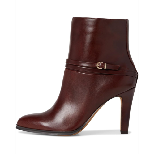 The Vince Camuto Sybilla Double Strap High Heel Bootie is your go-to for polished power dressing with a feminine twist. Crafted with a luxe leather upper and smooth fabric lining, this ankle-high beauty is all about refined structure and everyday glam. The sleek almond toe, stiletto heel, and a pair of wraparound straps with metal-tone buckles add a subtle equestrian-inspired flair, perfect for turning sidewalks into runways. A side zipper ensures easy wear, while the rubber outsole keeps your stride confident.