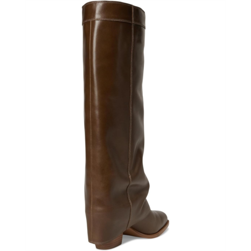 The Steve Madden Winnick is a knee-high boot with a fold-over cuff, square toe, and block heel. Crafted from leather upper and nylon lining, the Winnick boot features provide a flattering fit.