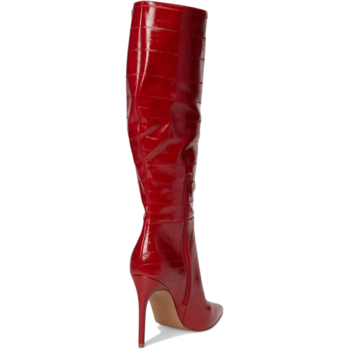 The confidence catalyst, Steve Madden Nitro. Designed with a luxe polyurethane upper and soft nylon lining and insole, NITRO ensures smooth comfort from day to night, while its durable rubber outsole keeps your stride steady and secure. The stylish zippered closure offers easy wear, and the pointed closed toe sharpens your silhouette with modern sophistication. With its calf-high rise and elegant stiletto heel, this heeled boot brings refined drama to denim, dresses, and everything in between.