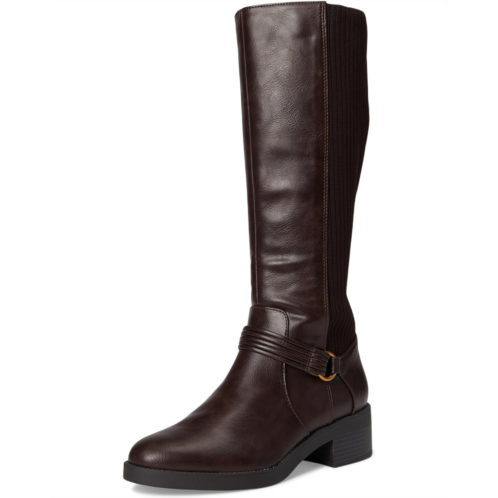 Sleek and comfortable, the LifeStride Brighton tall boots with modern design and built-in stretch are a go-to. Crafted with a faux leather upper, it features a rounded toe, zippered side closure, and a decorative ankle strap with metallic ring accent for a touch of edge. The stretch knit back panel ensures a flexible fit, while Soft System comfort technology delivers all-day cushioning, support, and flexibility.