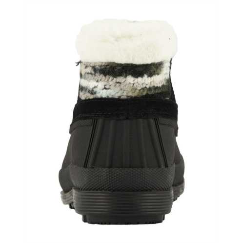 Water-resistant rubber upper and Scotchgard treated suede and knit shaft with soft pile lining.