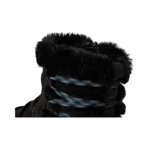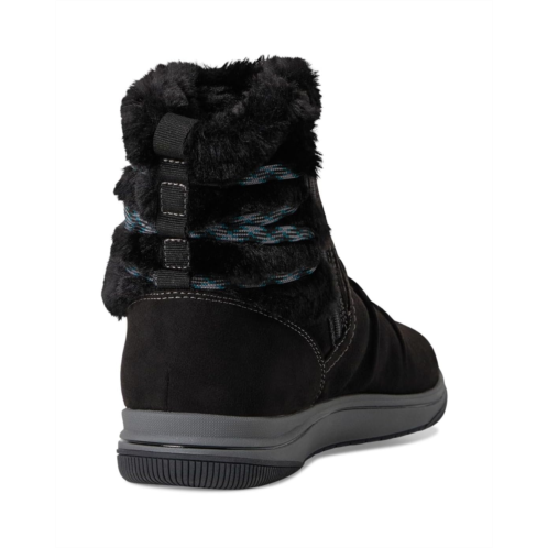 Keep your feet warm and comfortable by wearing the Clarks Breeze Cozy Boots. The ankle-high boots come with a synthetic upper, insulating faux fur lining, and a removable Cushion Soft footbed that delivers customizable, targeted support. The easy slip-on style with lace-up details at the back allows a secure fit.
