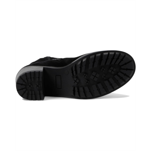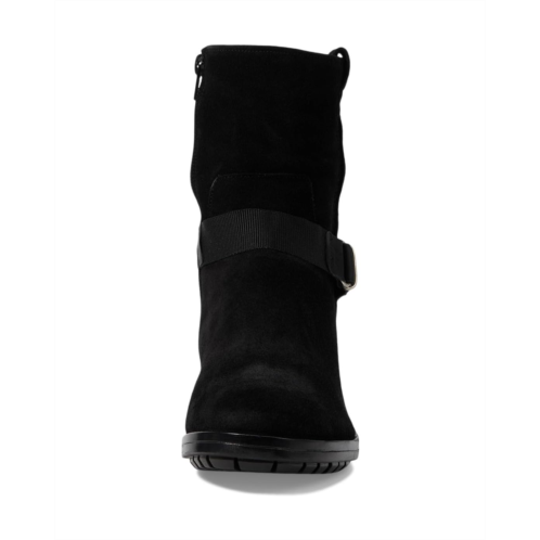 The Eric Michael Frisco is a block-heeled ankle boot in nubuck with detailed buckle embellishment. Featuring a round toe silhouette, the boot has leather upper construction and a side zipper for easy entry.