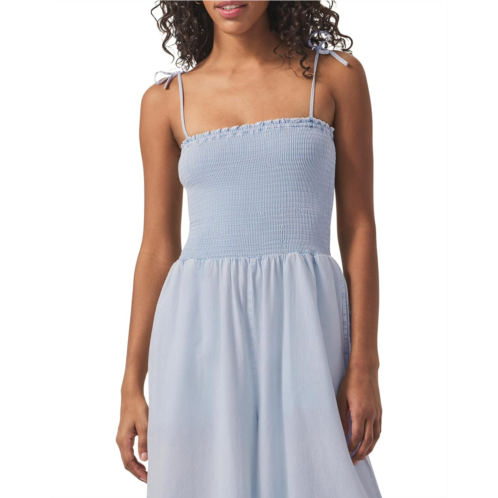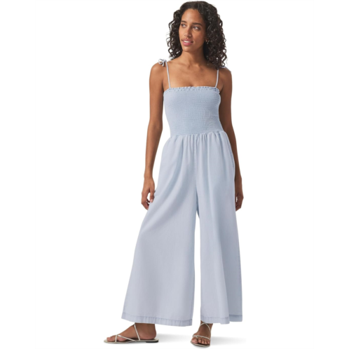 Meet your favorite timeless stripes in the Splendid Indigo Stripe Jumpsuit. It features an allover smocked bodice that hugs in all the right places while offering stretch and ease. The tie straps, designed to be styled in delicate bows, rest effortlessly on your shoulders for a chic, feminine touch. A higher-waisted fit accentuates your shape, flowing into wide-leg pants that move with grace and ease. Seam pockets add functionality without compromising style.