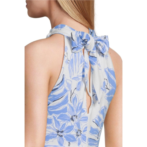 The Lilly Pulitzer Montecito Skirted Romper is your all-in-one answer to effortless elegance. Featuring a flirty halter neckline and a flattering ruched waistband, this skirted romper hugs your curves at the chest and waist while flaring out playfully at the hem. Sleeveless and breezy, it's the perfect companion for sunny days and spontaneous getaways. The above-the-knee length shows off your legs, while the bold floral print brings vacation glam to every step.