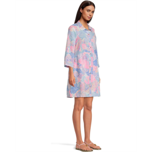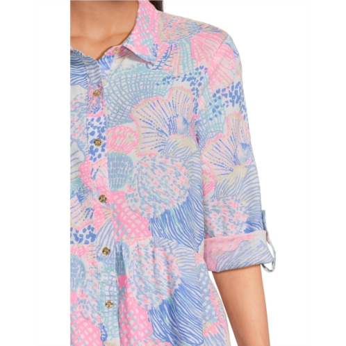 The Lilly Pulitzer Shaela Dress is an effortlessly chic piece designed for comfort and style. With an easy, roomier fit that gently skims the body, this above-the-knee dress features three-fourth sleeves with foldable cuffs and a classic collared neckline. The button-front closure adds a polished touch, while the vibrant floral print throughout bring a hint of elegance to this everyday favorite.