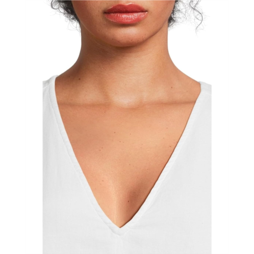 The Splendid Dawson Linen Mini Dress is your go-to for sunshine days and balmy nights, blending casual ease with timeless polish. Designed in a classic fit, this wide-shoulder sleeveless silhouette features a flattering front V-neckline that elongates the frame and adds a hint of allure. Crafted for comfort with a pull-on design, it hits just above the knee for a flirty, laid-back vibe. Fully lined for a smooth fit and added coverage, the dress is finished with chic stitch-through pockets that balance style and function.