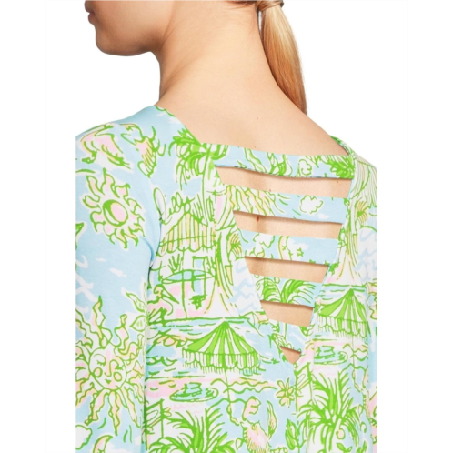 Look always elegant and fresh by wearing Lilly Pulitzer Ophelia 3/4 Sleeve Dress. The dress features a quarter-length fitted sleeve. A crew neckline with a lattice design adds to the dashing style. The ruffled drop is intended to hit the knees.