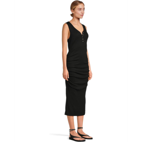 Elevate your casual style in the Michael Stars Samira Tank Henley Midi Dress. Featuring a Henley neckline with a front button placket, sleeveless design, ruching throughout, and a midi length.