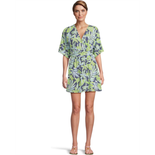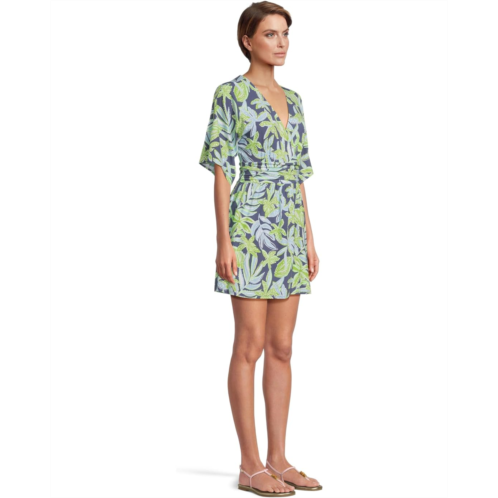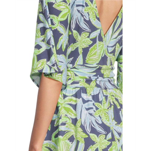 Add a stunning detail to your casual style wearing the pull-on style Lilly Pulitzer Parigi Skort Romper Dress. The skirted romper features a surplice V-neckline, elbow-length kimono sleeves, a ruched waistband, and an above-the-knee length skirt with internal shorts. The allover floral print on the dress elevates the style.