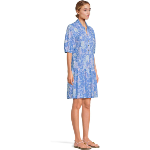The Lilly Pulitzer Bingley Dress is an easy-fit, popover shirtdress with a collar, half placket with gold buttons, elbow-length sleeves, and tall ruffle at the hem. The cotton fabric of the dress takes your comfort to the next level. Featuring an allover floral print, this printed dress works for different occasions.